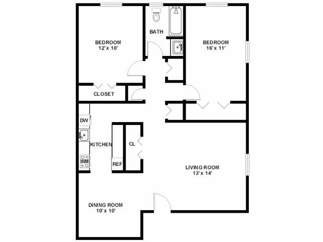 2 Dormitorios, 1 Baño, 690-865 pies²Galería del Modelo