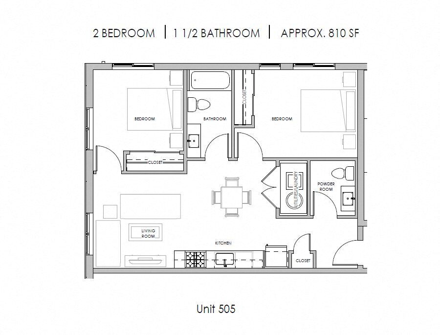 Two Bedroom One Half Bath - Plano 1 Unidad de apartamento: 505Modelo de apartamento: Two Bedroom One Half Bath$2,4772 Dormitorios, 1.5 Baños, 810 sq ftDisponible March 25, 2026![]()