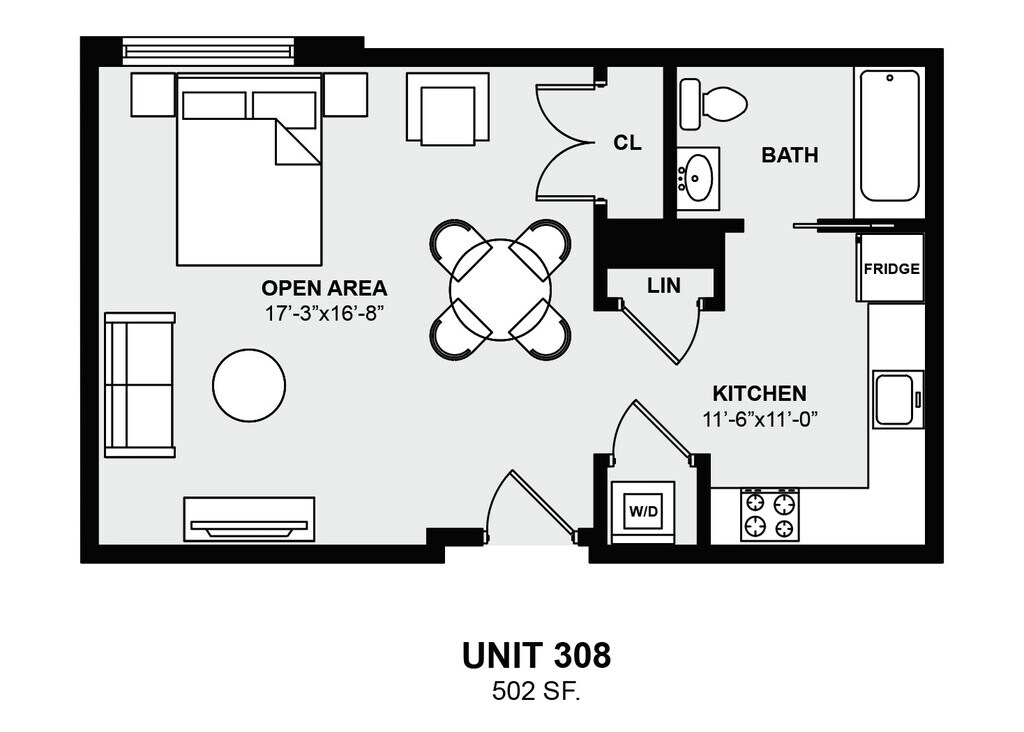 Studio - Plano 7 Unidad de apartamento: 308Modelo de apartamento: Studio$1,695Estudio, 1 Baño, 502 sq ftDisponible December 1, 2025![]()