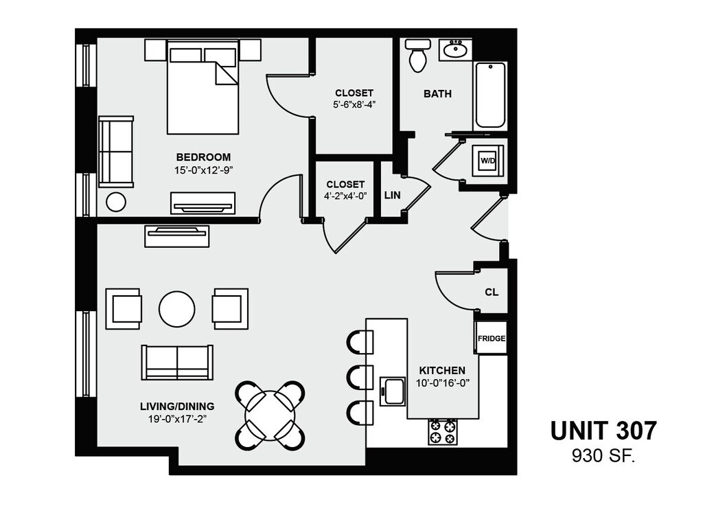 1 Dormitorio, 1 Baño, 752-930 pies²Disponible AhoraGalería del Modelo