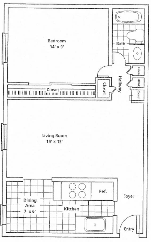 Modelo de apartamento: 1 Bed / 1 Bath MR$9001 Dormitorio, 1 Baño, 450 sq ftDisponible AhoraPlanosFotos![]()