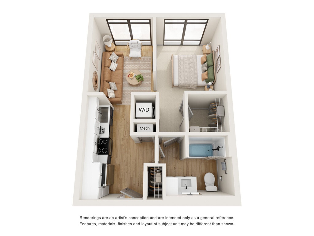 Estudio, 1 Baño, 643 pies²Galería del Modelo