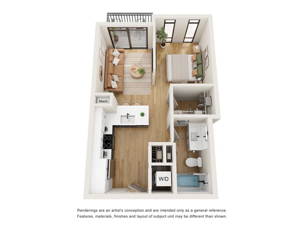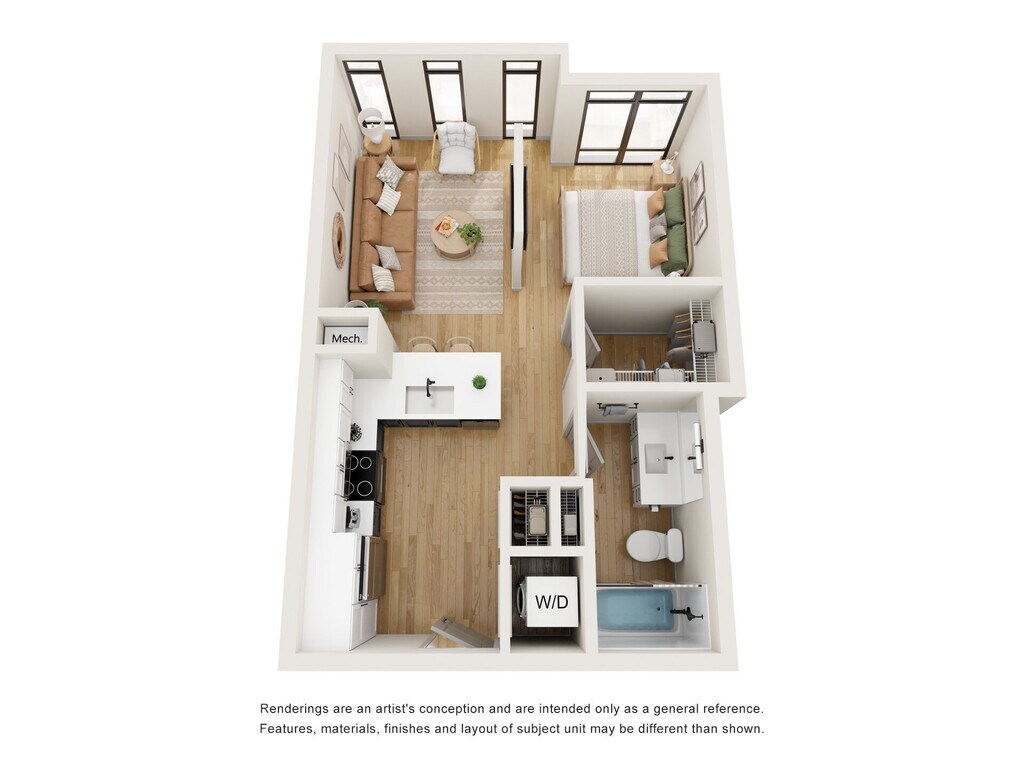 Estudio, 1 Baño, 543 pies²Disponible AhoraGalería del Modelo