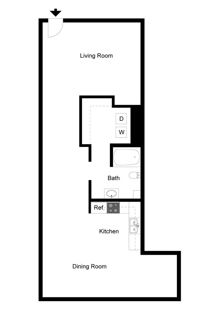 Modelo de apartamento: F1Estudio, 1 Baño, 578-650 sq ftNo Disponible![]()