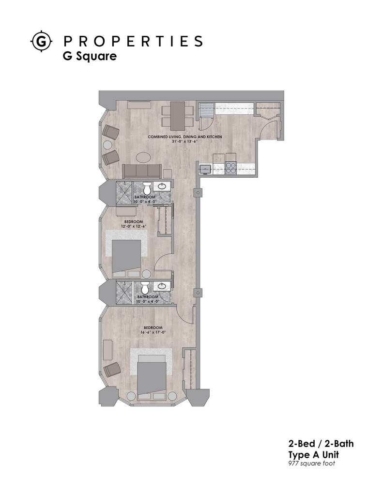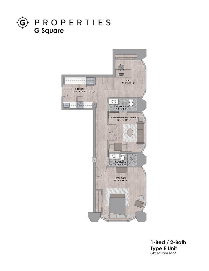 Unidad: G Square-503 - Imagen 8 Unidad de apartamento: G Square-506Modelo de apartamento: The Perry$2,3121 Dormitorio, 1 Baño, 515 sq ftDisponible AhoraThe Corliss