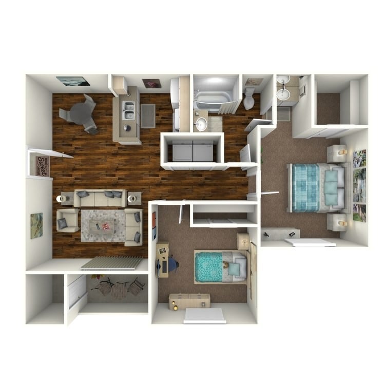 Modelo de apartamento: B1Desde $1,2002 Dormitorios, 1 Baño, 822 sq ftDisponible Ahora![]()