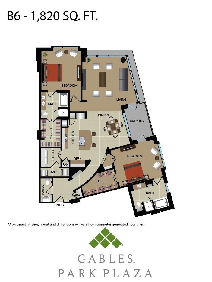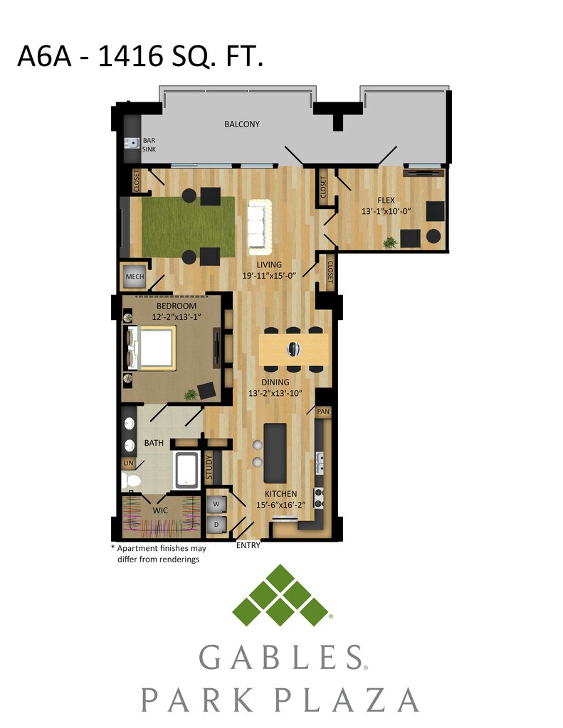 1 Dormitorio, 1 Baño, 747 pies²Disponible AhoraGalería del Modelo