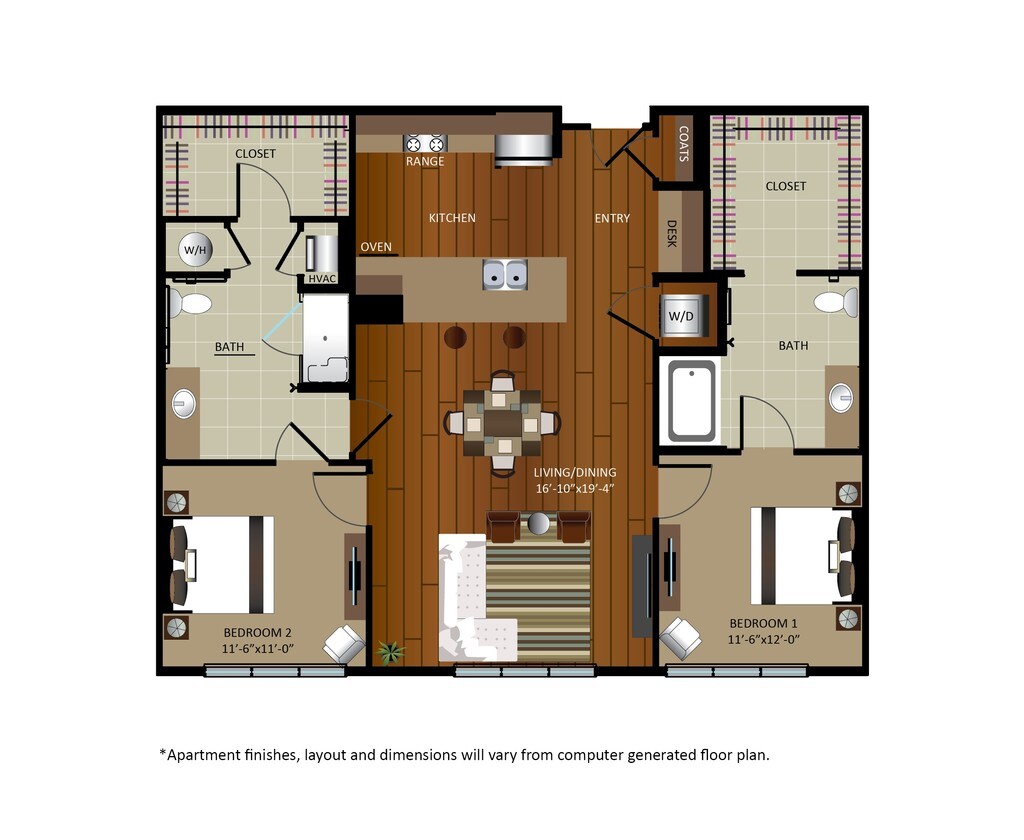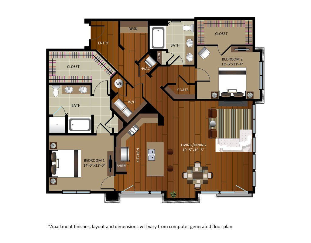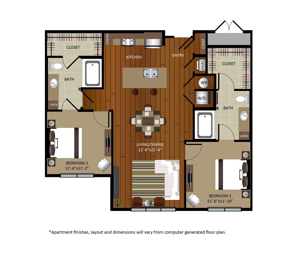Modelo de apartamento: A2Desde $2,8941 Dormitorio, 1 Baño, 746 sq ftDisponible Ahora![]()