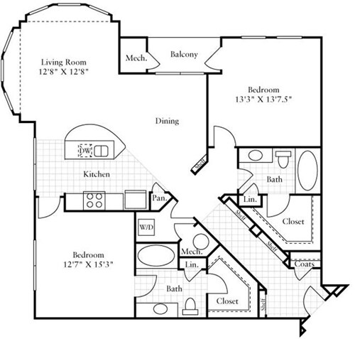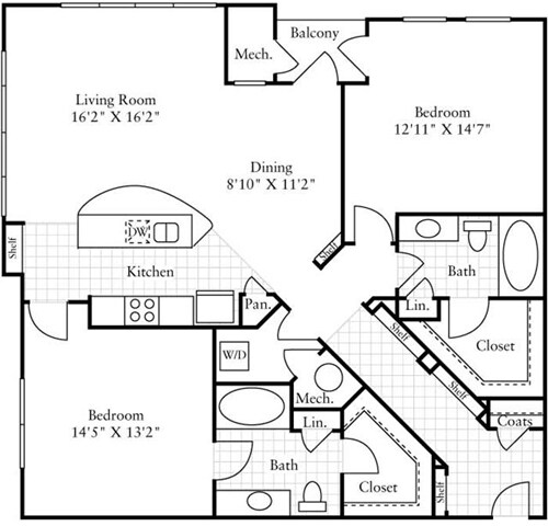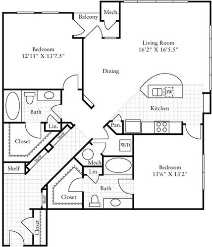 Modelo de apartamento: 1 Bedroom CDesde $1,8121 Dormitorio, 1 Baño, 809-815 sq ftDisponible Ahora![]()