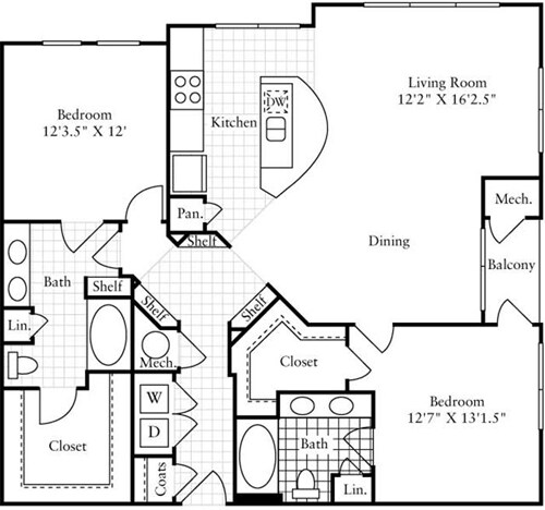 Modelo de apartamento: 1 Bedroom FDesde $1,9931 Dormitorio, 1 Baño, 956 sq ftDisponible Ahora![]()