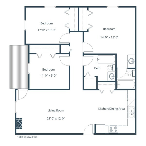 3 Dormitorios, 2 Baños, 1200 pies²Galería del Modelo