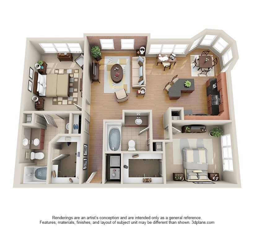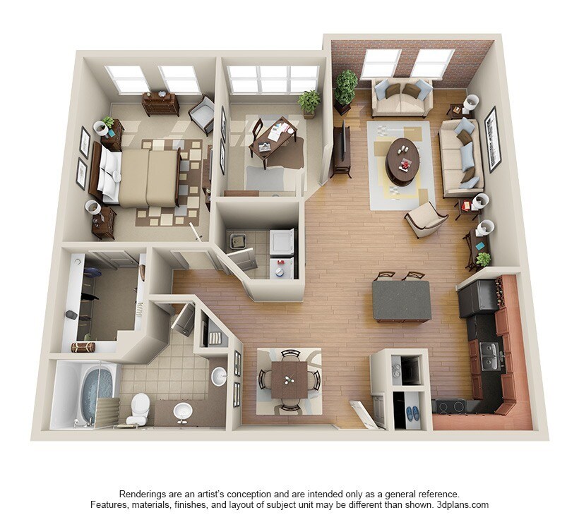 1 Dormitorio, 1 Baño, 840 pies²Disponible AhoraGalería del Modelo