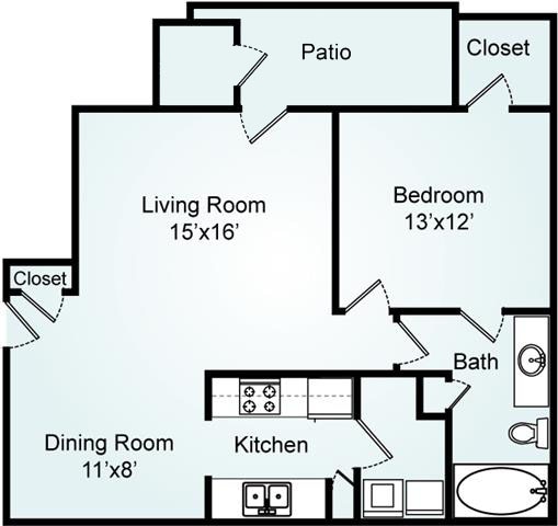 Modelo de apartamento: B - The DogwoodDesde $1,1732 Dormitorios, 1 Baño, 1051 sq ftDisponible Ahora![]()