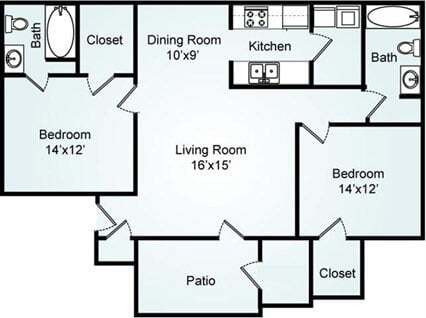 2 Dormitorios, 2 Baños, 1150 pies²El más grandeEsta opción tiene las unidades más grandes para este modeloGalería del Modelo