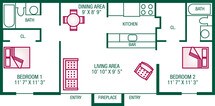 Modelo de apartamento: 2 Bedroom / 2 Bath (with Fireplace) - Plan ALlame para Precios2 Dormitorios, 2 Baños, 1000 sq ftNo Disponible![]()