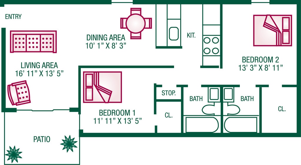 Modelo de apartamento: 2 Bedroom / 2 Bath - Plan C$9952 Dormitorios, 2 Baños, 850 sq ftDisponible Ahora![]()