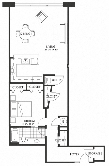 1 Dormitorio, 1 Baño, 1030 pies²Disponible Mar 31Galería del Modelo