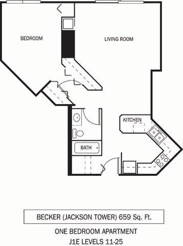 Lake - Plano 1 Unidad de apartamento: 1905JModelo de apartamento: Lake$1,4961 Dormitorio, 1 Baño, 849 sq ftDisponible AhoraBecker