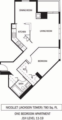 Modelo de apartamento: NicolletDesde $1,4701 Dormitorio, 1 Baño, 780 sq ftDisponible Ahora![]()
