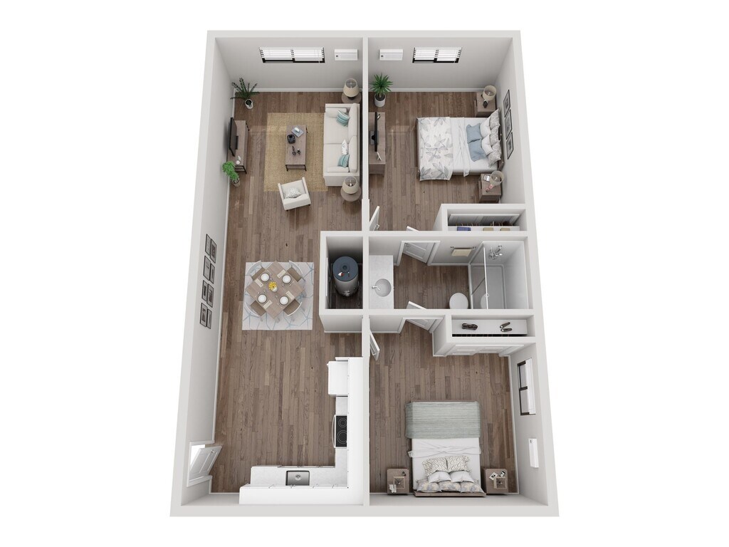 2 Dormitorios, 1 Baño, 850 pies²Disponible Oct 10Galería del Modelo