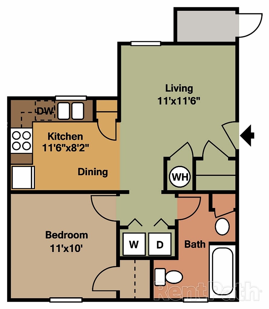 1 Dormitorio, 1 Baño, 700 pies²Disponible AhoraGalería del Modelo