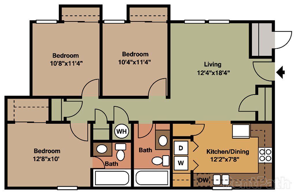 3 Dormitorios, 2 Baños, 1025 pies²Disponible AhoraGalería del Modelo