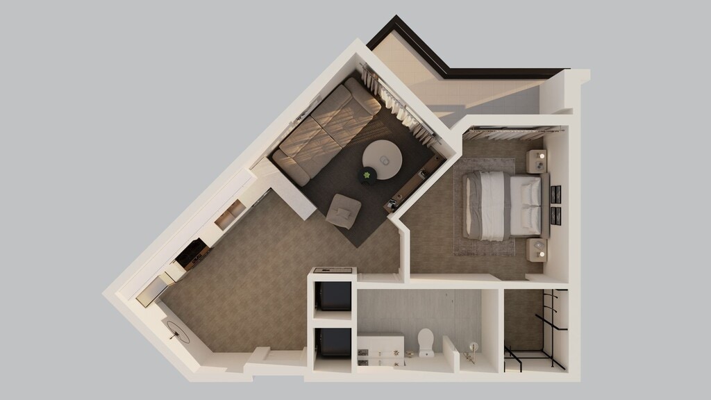 1 Dormitorio, 1 Baño, 673 pies²Disponible AhoraGalería del Modelo
