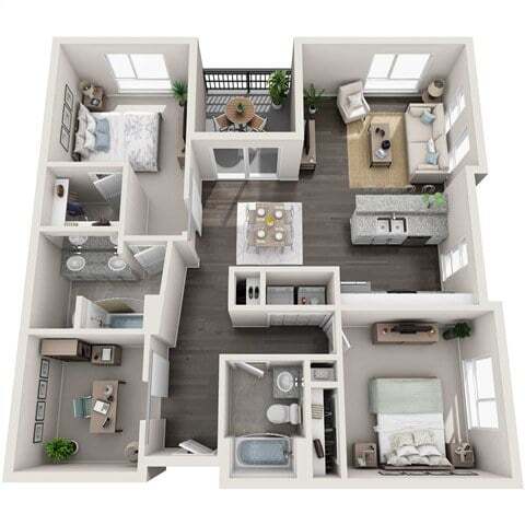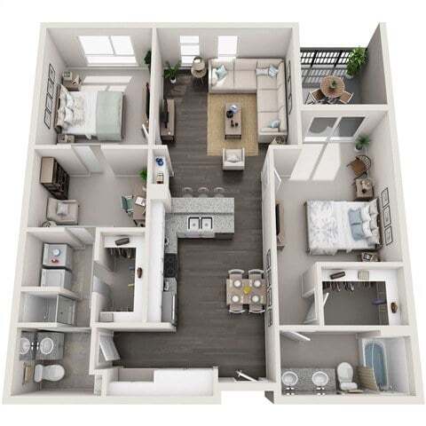Modelo de apartamento: FirewheelDesde $1,7951 Dormitorio, 1 Baño, 671 sq ftDisponible Ahora![]()