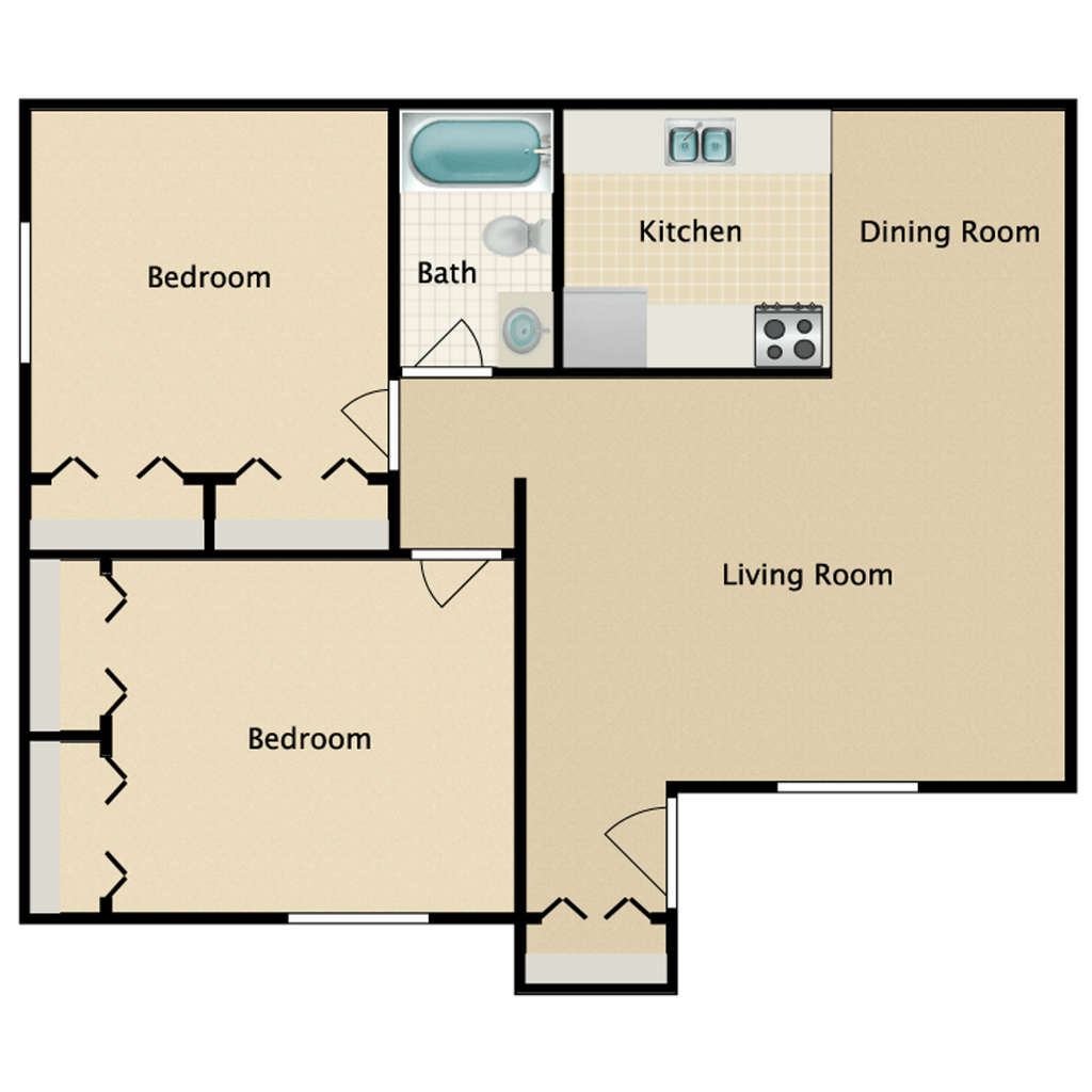 2 Dormitorios, 1 Baño, 865 pies²Disponible AhoraGalería del Modelo
