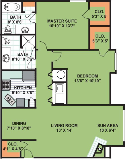 Modelo de apartamento: One Bedroom One Bath (875 Square Feet)Desde $1,2771 Dormitorio, 1 Baño, 875 sq ftNo Disponible![]()