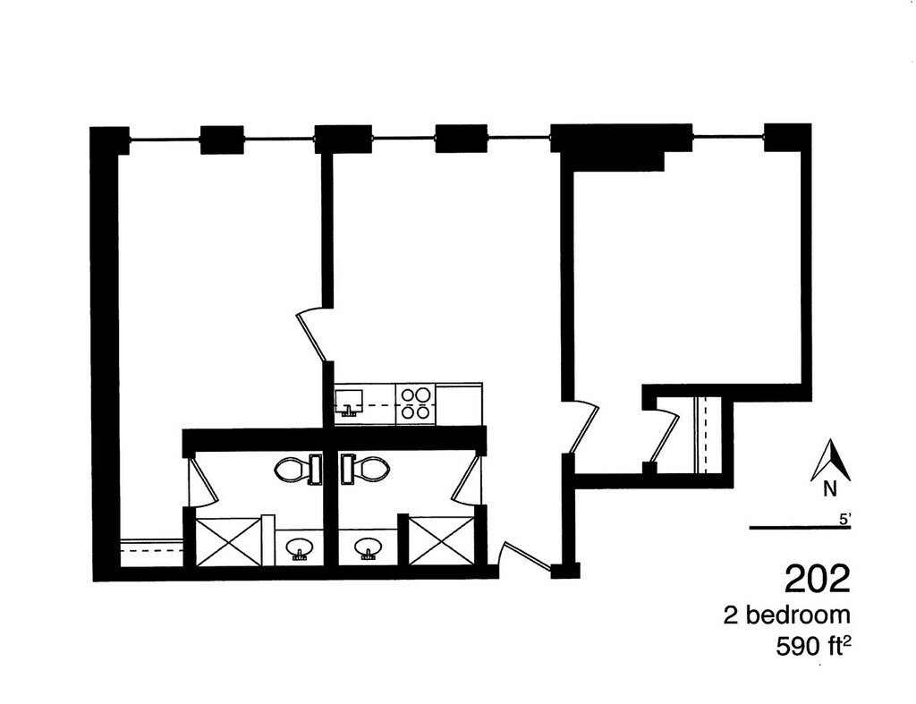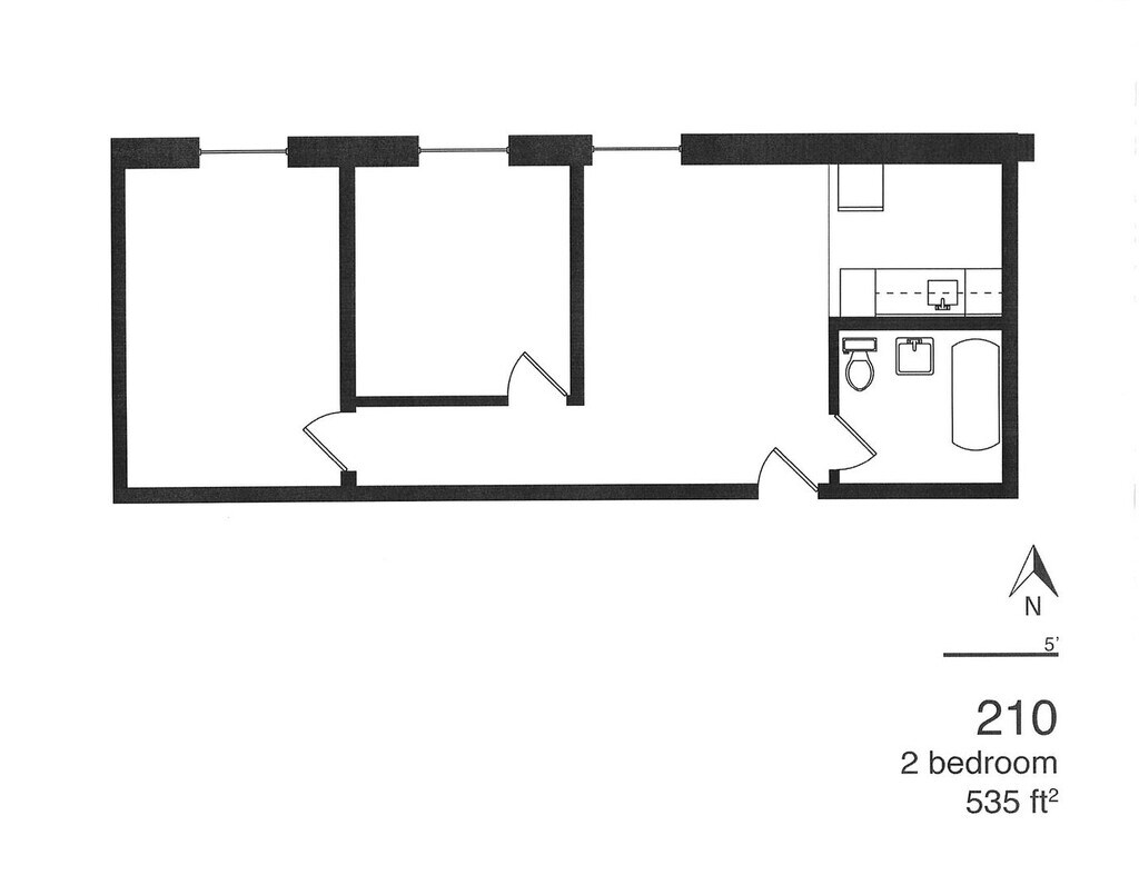 Unidad de apartamento: 210Modelo de apartamento: 2 Bedroom 1 bathroom (535-570 sq ft)$6952 Dormitorios, 1 Baño, 535 sq ftDisponible May 1, 2026![]()