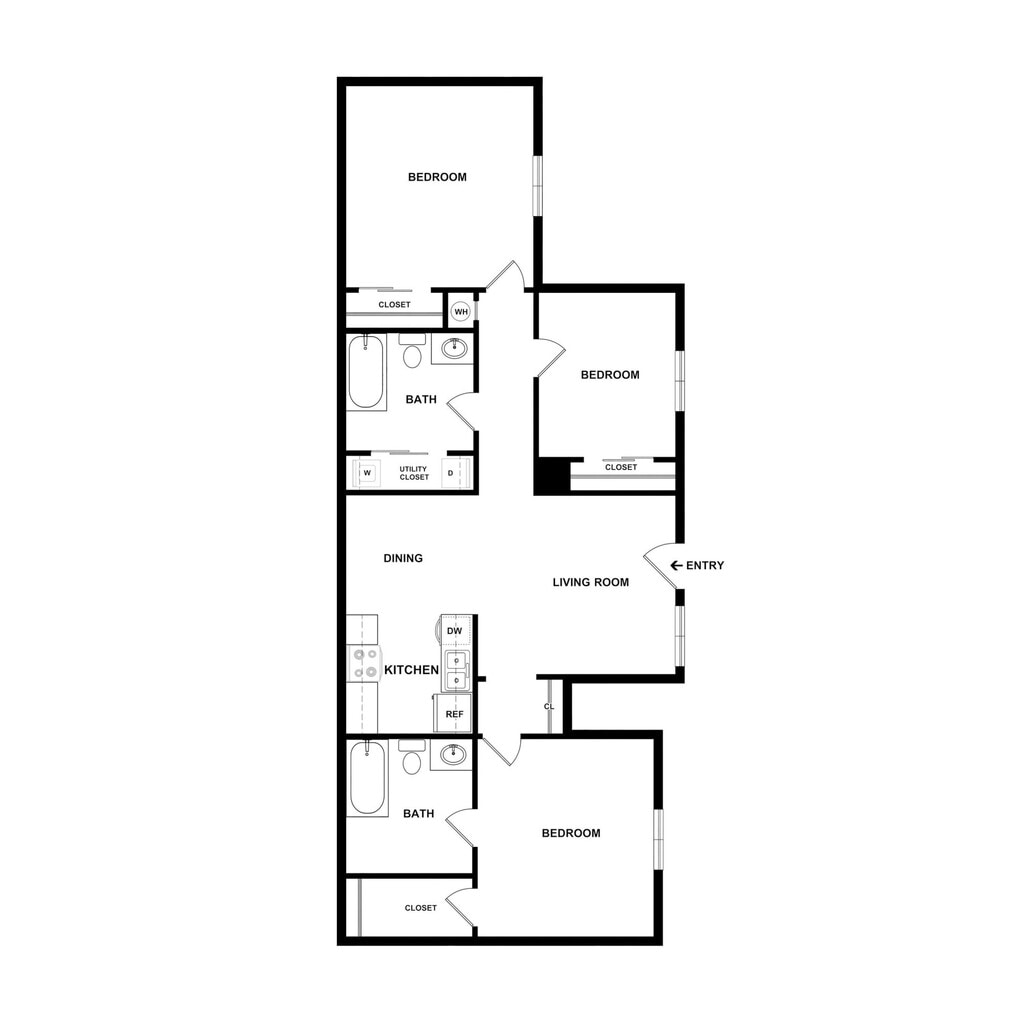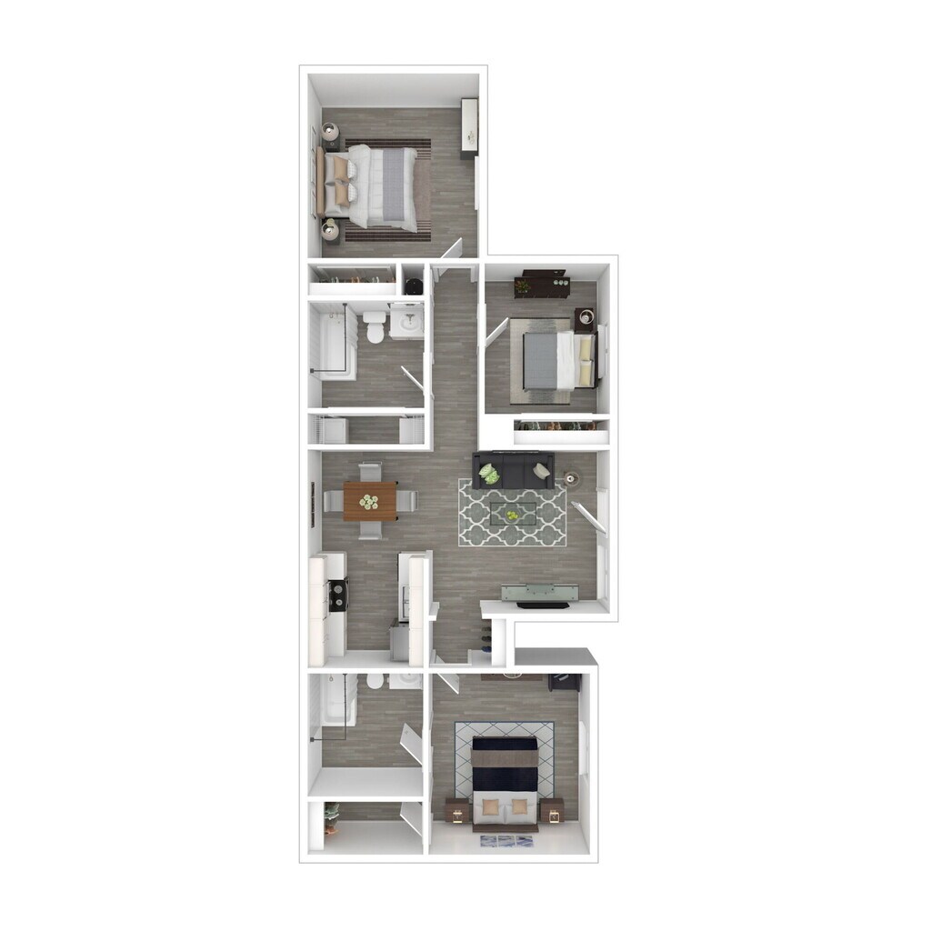 2x2 - Plano 4 Unidad de apartamento: 514Modelo de apartamento: 2x22 Dormitorios, 2 Baños, 830 sq ftDisponible December 15, 20253 Dormitorios