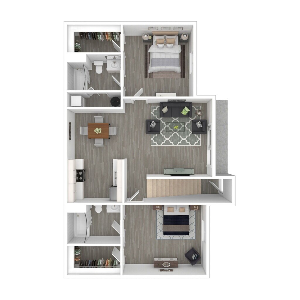 Modelo de apartamento: 2x22 Dormitorios, 2 Baños, 830 sq ftDisponible December 15, 2025![]()