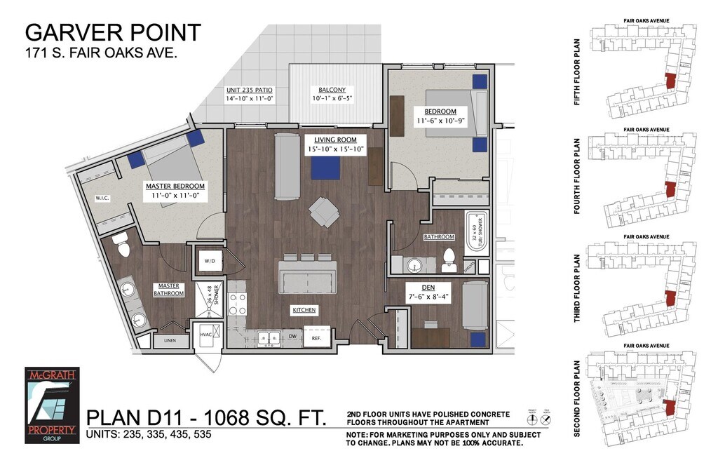 D11 - Plano 2 Unidad de apartamento: 535Modelo de apartamento: D11$2,5202 Dormitorios, 2 Baños, 1068 sq ftDisponible Ahora