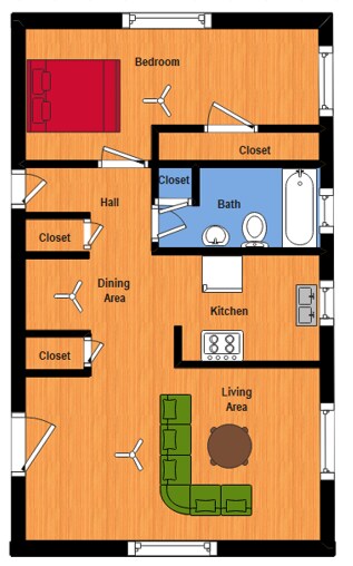 Modelo de apartamento: 1 Bed, 1 Bath Flat$7751 Dormitorio, 1 Baño, 675 sq ftNo Disponible![]()