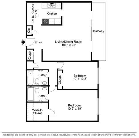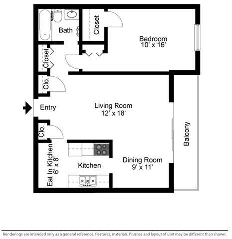 Modelo de apartamento: W1B1BF$9171 Dormitorio, 1 Baño, 770 sq ftDisponible Ahora![]()