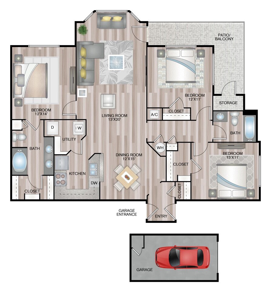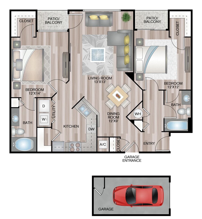 Modelo de apartamento: The SavannahDesde $1,2201 Dormitorio, 1 Baño, 843 sq ftDisponible AhoraPlanosFotos![]()