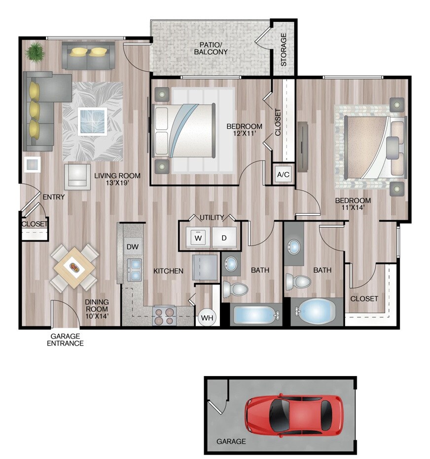1 Dormitorio, 1 Baño, 840 pies²Disponible AhoraGalería del Modelo