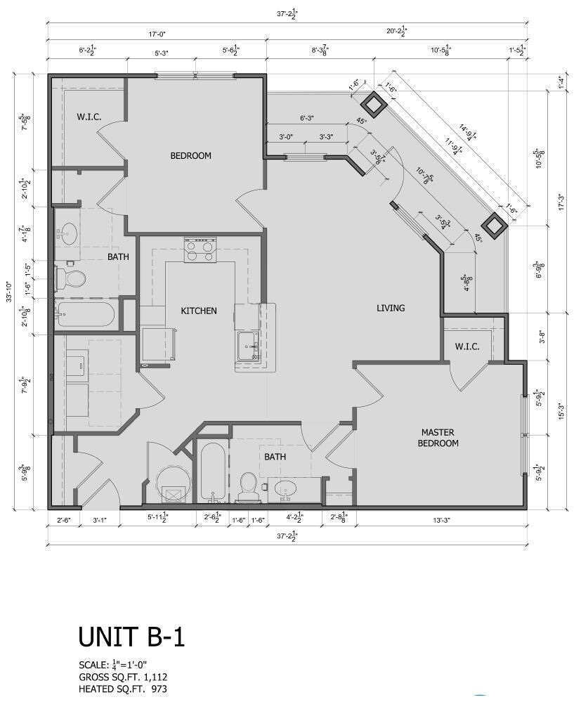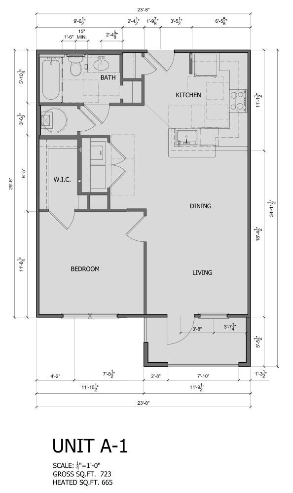 1 Dormitorio, 1 Baño, 723 pies²Galería del Modelo