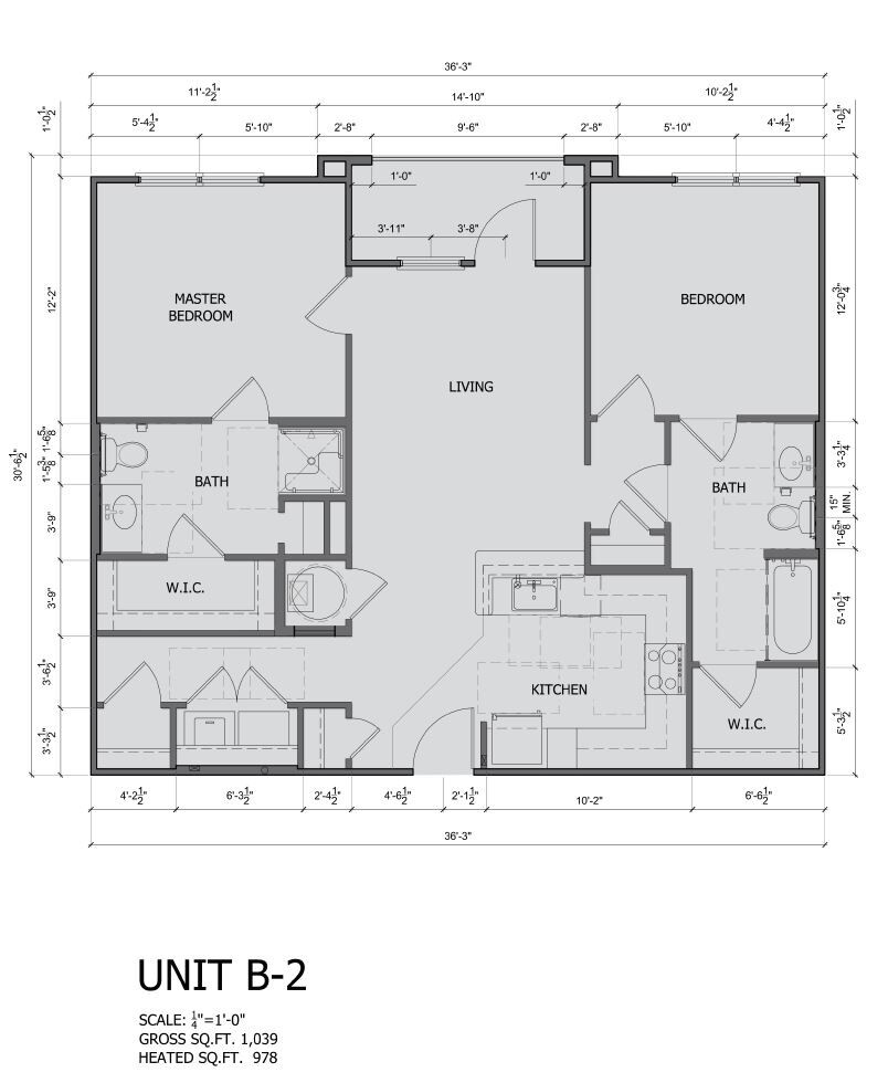 2 Dormitorios, 2 Baños, 939 pies²Galería del Modelo