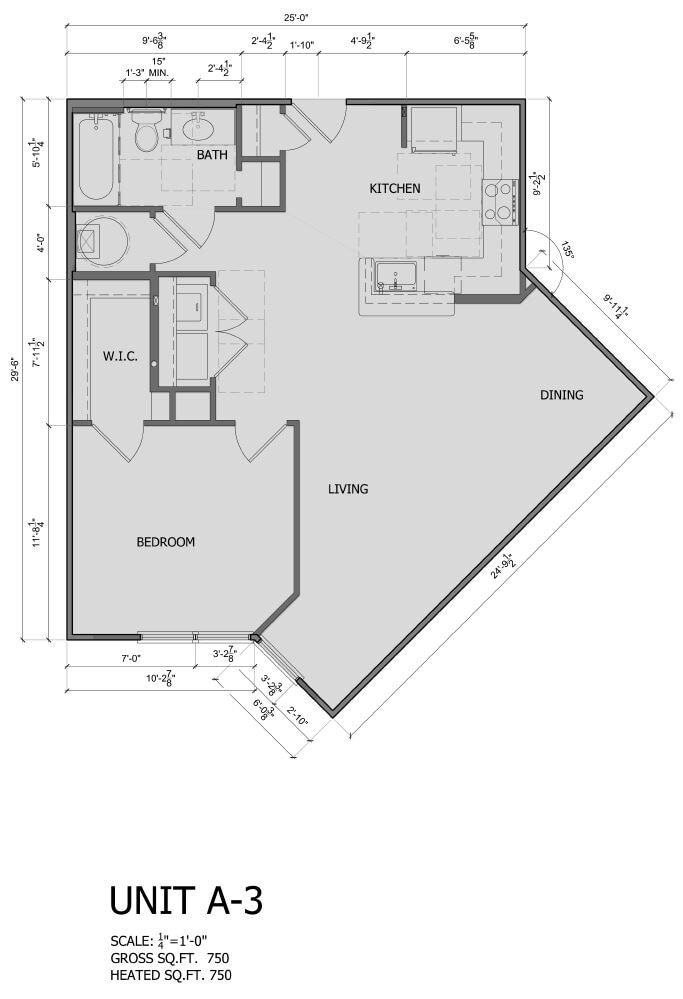 1 Dormitorio, 1 Baño, 750 pies²Galería del Modelo