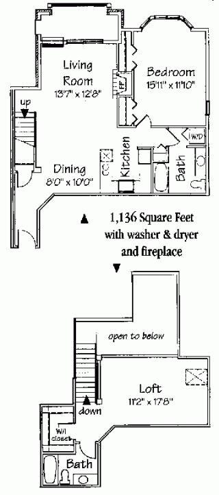 2 bedroom 2 bath corner loft w/fireplace - Plano 1 2 bedroom 2 bath corner loft + den w/fireplace