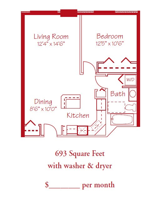 Modelo de apartamento: 1 Bedroom 1 bathroom ranch1 Dormitorio, 1 Baño, 693 sq ftDisponible Ahora![]()