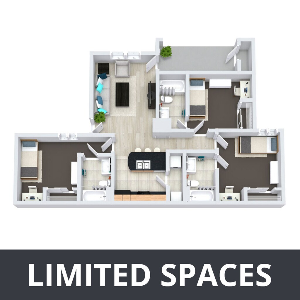 Modelo de apartamento: D14 Dormitorios, 4 Baños, 1364 sq ftDisponible August 14, 2026![]()