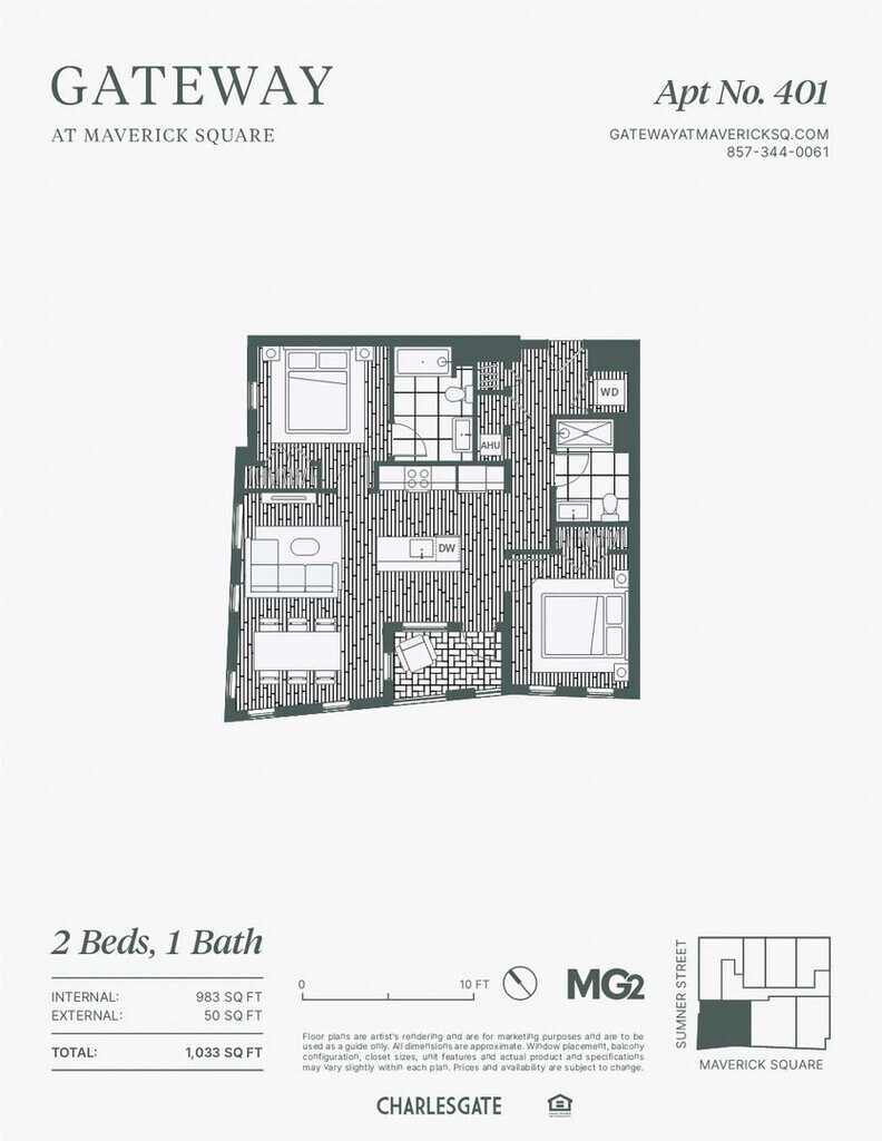 Gateway at Maverick Square - presents an array of impressive studios, 1, 2, and 3-bedroom residences in the lively Maverick Square neighborhood. Each residence boasts high-end amenities such as custom light fixtures, recessed lighting, high ceilings, hardwood floors, ample closet space, spacious bedrooms, sun-filled windows, and marble bathrooms featuring anti-fog LED vanity mirrors. Private balconies offer expansive views of Jeffries Point and the Boston skyline. The kitchens are equipped with stunning waterfall islands, 5-burner gas cooking, top-tier stainless steel appliances, and generous cabinet space. Off-street parking is available for rent nearby. It's close proximity to public transportation makes commuting to downtown Boston a seamless experience. Gateway at Maverick Square stands out as a premier living space, providing exceptional urban living in the heart of East Boston.