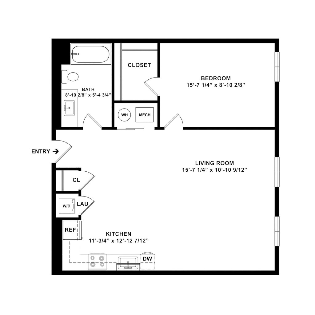 Estudio, 1 Baño, 517 pies²Disponible AhoraGalería del Modelo