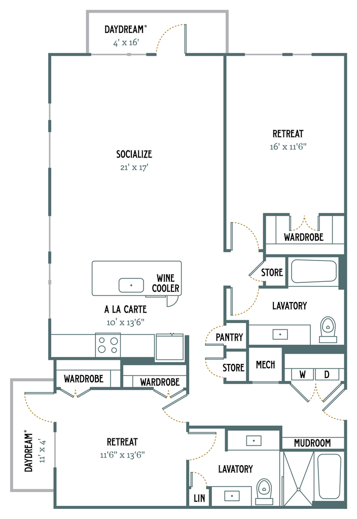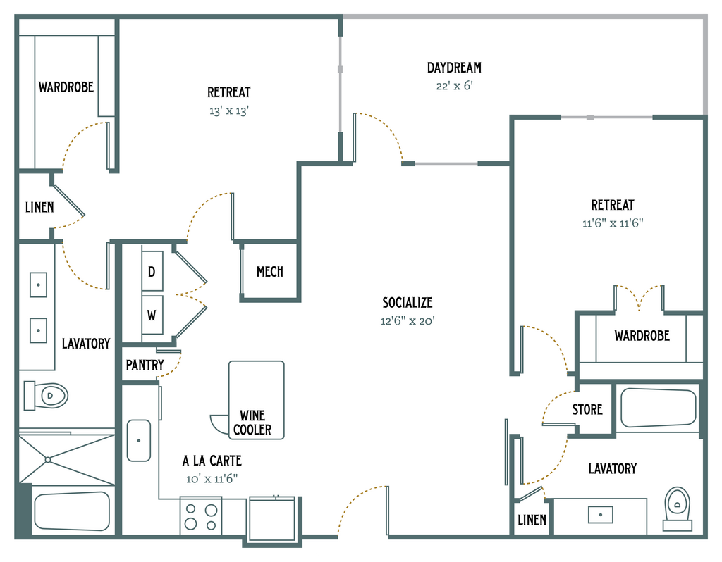 1 Dormitorio, 1 Baño, 752 pies²Disponible AhoraGalería del Modelo