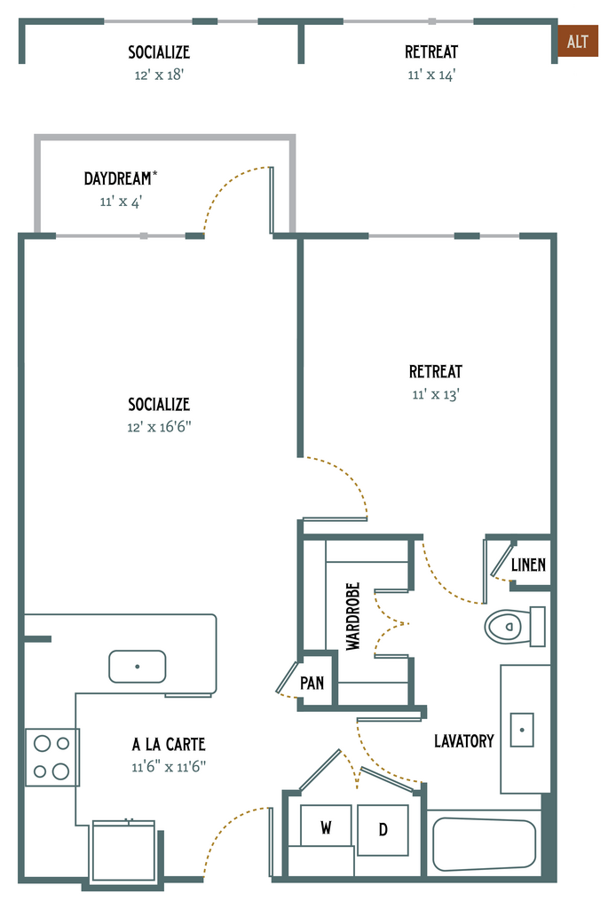 Modelo de apartamento: A11 Dormitorio, 1 Baño, 667 sq ftDisponible November 14, 2025![]()