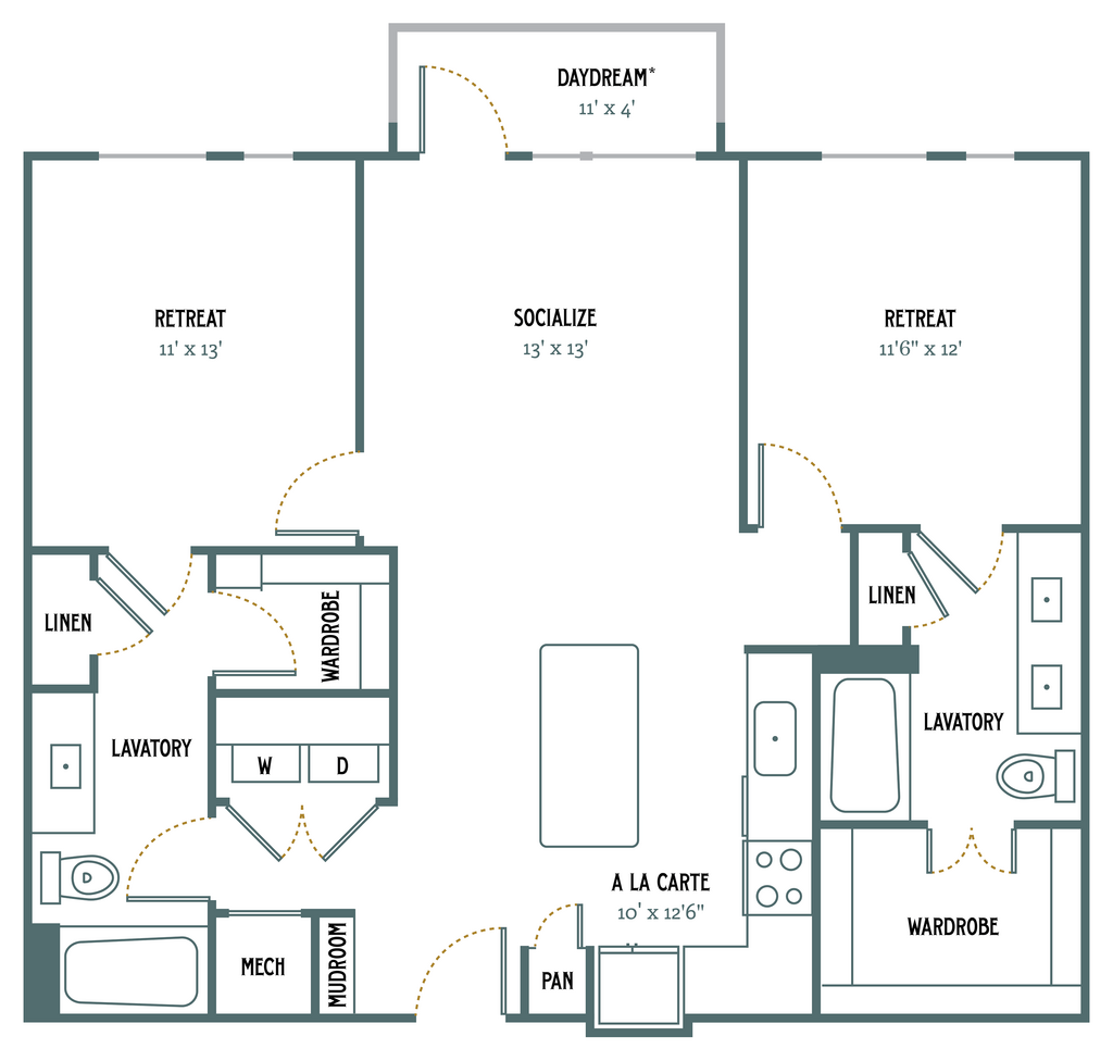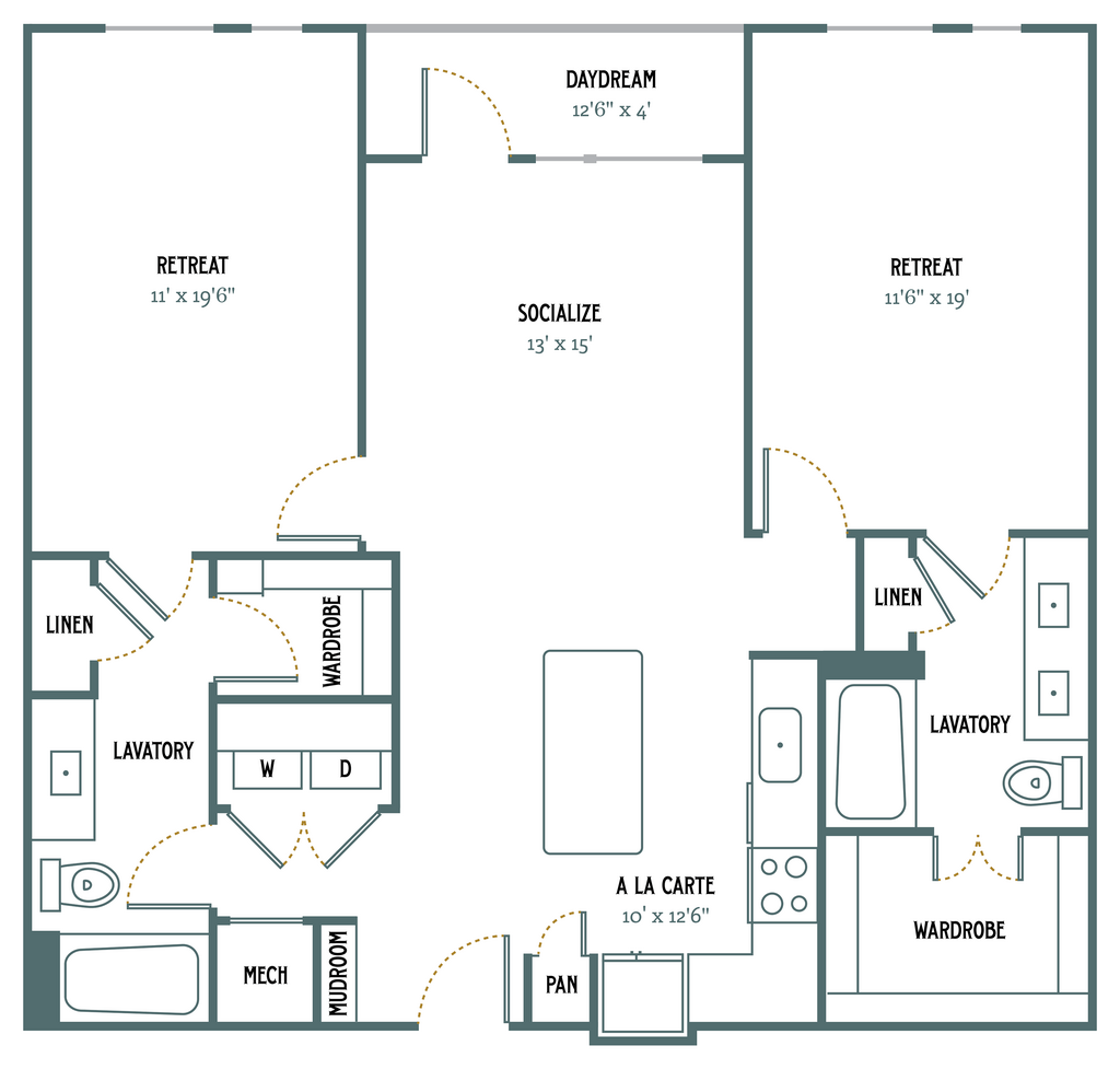 1 Dormitorio, 1 Baño, 802-857 pies²Disponible AhoraGalería del Modelo
