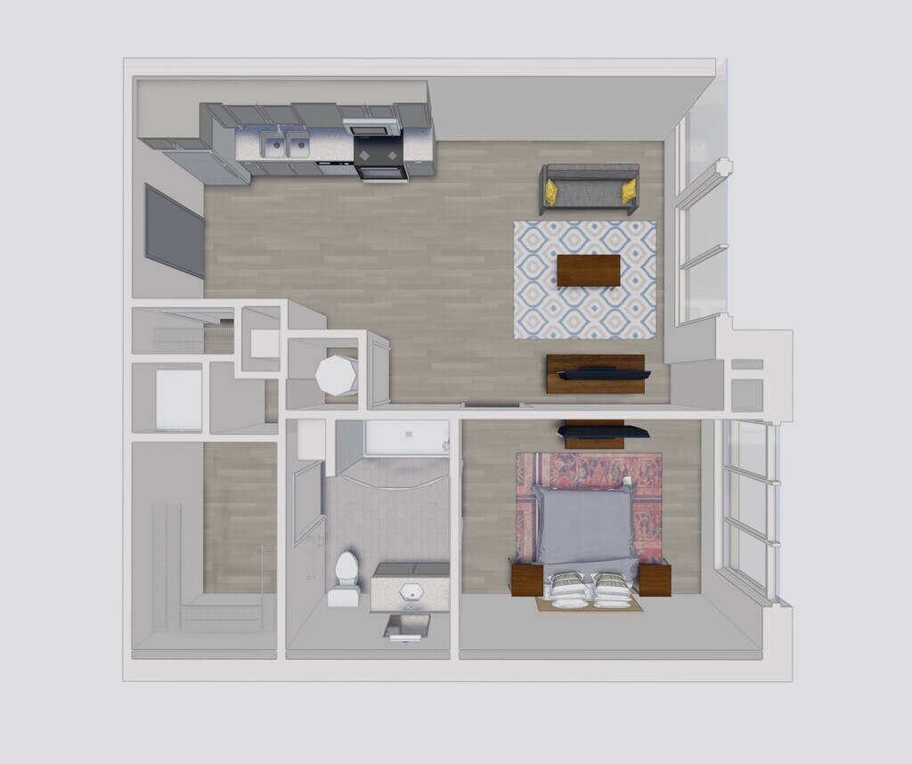 Modelo de apartamento: Gayoso House - gh-S1C$999Estudio, 1 Baño, 583 sq ftDisponible Ahora![]()